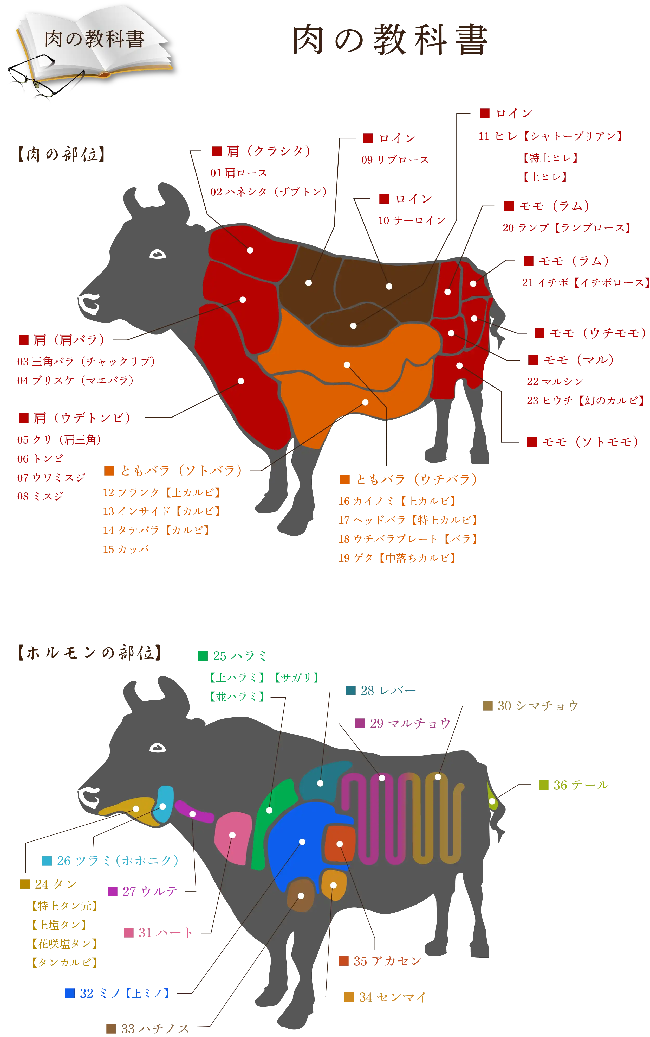 牛の肝臓。 ホルモンの中では最大の部位。 独特の臭みを感じる人がいるが、下処理と血抜きがしっかりされている肉なら、驚くほど臭みがなく食べやすくなる。 鉄分・カリウム等のミネラルの他、ビタミンA・ビタミンB群等も豊富に含まれ栄養満点。 焼きすぎると固くなるため注意。鉄分不足の方にはおすすめ!